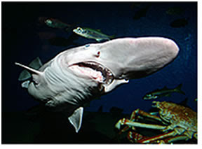 Raramente visto, el tiburón duende habita en las profundidades oceánicas, donde se cree que se alimenta de calamares, camarones, pulpos y otros animales de cuerpo blando que habitan las profundidades. Los tiburones duende pueden llegar a ser muy grandes. En su morro largo, en forma de cuchillo, hay unas diminutas células sensoras. Tiene una boca muy grandes con dientes como agujas. Se sabe muy poco de este tiburón y su hábitat. Como vive a tan gran profundidad, los humanos casi nunca entran en contacto con él. Han sido vistos en las costas de Japón, Australia y el sur de África.